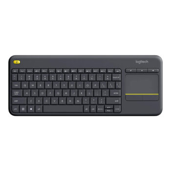 Wireless plug-and-play keyboard with integrated touchpad for total control of your TV-connected PC from your couch. K400 is a quiet, easy-to-use keyboard with a built-in touchpad, plus all the hotkeys Windows® and Android™ users know and love. Complete with media controls that make navigating your PC-controlled TV a breeze.